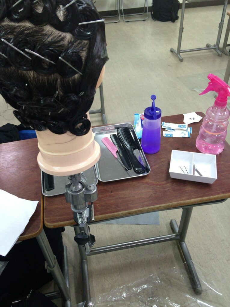 カールをピンで止めて形を作って時間内に綺麗に終わらせないといけないのですがほんと難しくて😵💫